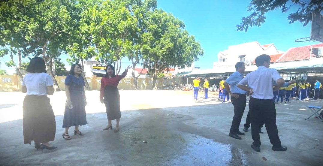 Đoàn công tác kiểm tra sân chơi bãi tập của học sinh tại trường THCS Tôn Đức Thắng, phường Phú Yên