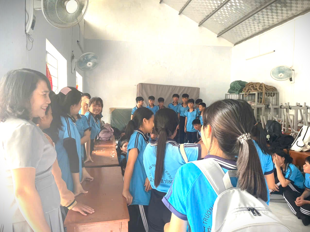 Bà Võ Thị Minh Duyên – Phó Giám đốc Sở GDĐT thăm lớp học tại trường THCS Lê Thánh Tông, xã Tuy An Bắc