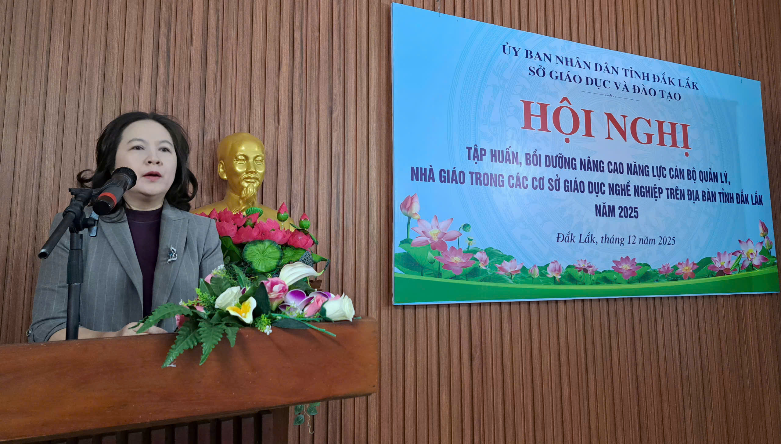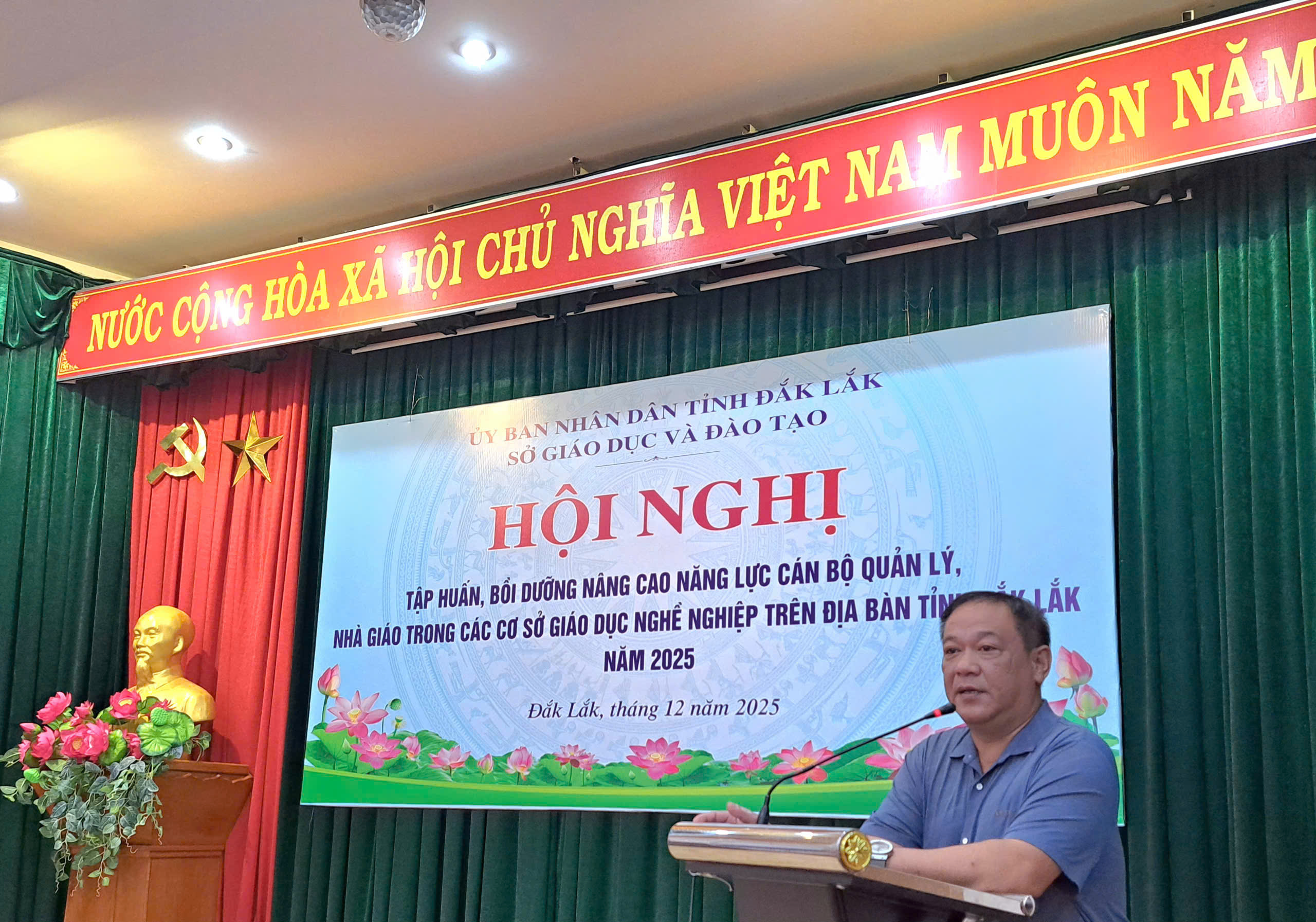 Thực hiện Kế hoạch số 54/KH-SGDĐT ngày 04/11/2025 Sở Giáo dục và Đào tạo (GDĐT) tỉnh Đắk Lắk tổ chức thành công Hội nghị tập huấn, bồi dưỡng nâng cao năng lực cho đội ngũ cán bộ quản lý, nhà giáo trong các cơ sở Giáo dục nghề nghiệp (GDNN) năm 2025. Đây là hoạt động trọng tâm nhằm thực hiện Kế hoạch đổi mới, phát triển GDNN và đáp ứng yêu cầu chuyển đổi số trong lĩnh vực giáo dục nghề nghiệp.