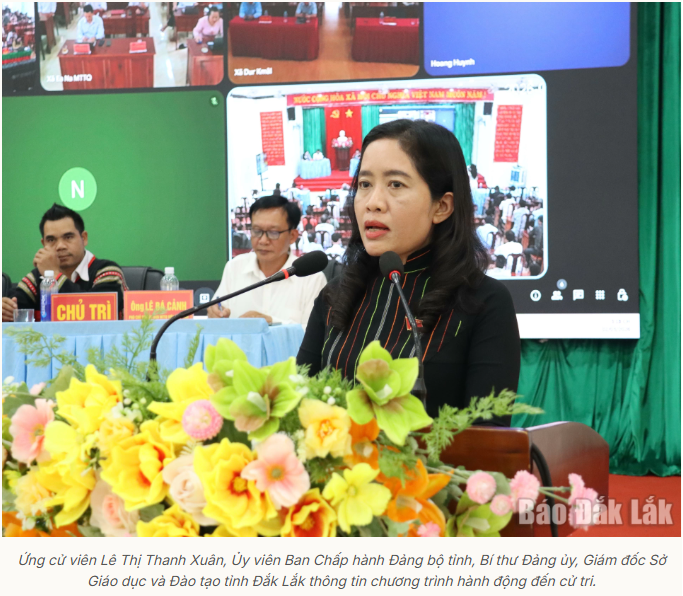 TS. Lê Thị Thanh Xuân, Giám đốc Sở Giáo dục và Đào tạo tỉnh Đắk Lắk, cùng các ứng cử viên đại biểu Quốc hội khóa XVI tiếp xúc cử tri tại các xã Dray Bhăng, Ea Ning, Ea Na và Dur Kmăl, thông tin chương trình hành động và lắng nghe ý kiến, kiến nghị của cử tri địa phương.